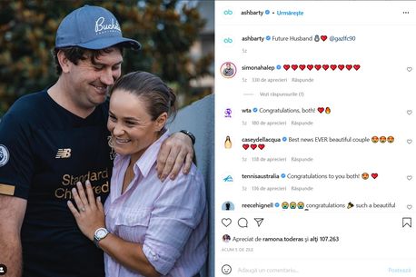 Totodată, Halep și Barty au disputat un demonstrativ la începutul sezonului și au făcut schimb de mesaje de fiecare dată când a avut loc un eveniment important în viața uneia dintre ele.