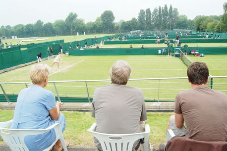 Nu, Roehampton nu arată nicidecum ca în imaginația iubitorilor sportului alb. Complexul sportiv aflat la circa 2 km nord vest de Wimbledon te frapează de la intrare. Un câmp imens în toată regula, cu un gazon mai ceva decât la All England Club, parcelat special pentru turneul de calificări. Te simți brusc precum un călător în timp, aruncat într-un sanctuar al liniștii. Nicăieri a merge la tenis nu aduce mai mult a ieșire în familie, la picnic. Pentru că așa și este! Pe marginea terenului, spectatorii stau direct pe iarbă, ba un grup de englezoaice de vârstă mijlocie își întind cearceaful la câțiva metri de terenul pe care americanca Vania King trage din răsputeri în meciul decisiv pentru accederea pe tabloul principal. Cu cățel și purcel, servesc o masă în tihnă, netulburate de aplauzele răzlețe și sunetele specifice la contactul mingilor cu rachetele și suprafața de joc. „Zgomotul” total diferit de cel auzit pe zgură adâncește nota de relaxare totală.
