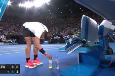 • Își poziționează două sticle de apă perfect în linie dreaptă, cu etichetele îndreptate spre mijlocul terenului în care urmează să joace;