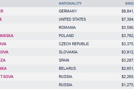 Sezonul recent încheiat a fost unul extraordinar pentru tenismenele noastre nu doar din punct de vedere sportiv, ci și financiar! Simona Halep a dat o adevărată lovitură în 2016, an la finalul căruia, deși a terminat pe 4 WTA, s-a poziționat pe 3 în clasamentul premiilor. Nici celelalte două reprezentante importante ale României nu se pot plânge, Irina Begu și Monica Niculescu aflânduse pe locurile 38, respectiv 41 în topul respectiv.