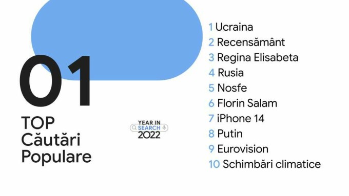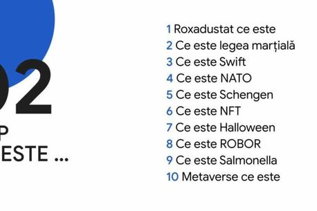 Pe următoarele locuri în topul întrebărilor au fost: „Ce este legea marțială?”, „Ce este SWIFT?”, „Ce este NATO?”, „Ce este Schengen?”, „Ce este NFT?”, „Ce este Halloween?”, „Ce este ROBOR”, „Ce este Salmonella?” și „Ce este Metaverse?”. Google România a realizat și topul „Căutărilor populare”, iar pe primele locuri se află subiectele: „Ucraina”, „Recensământ”, „Regina Elisabeta”, „Rusia” și „Nosfe”.
