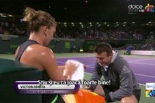 Captură foto Dolce. Atunci când Ioniță i-a spus lui Halep că adversara ei, Serena Williams, se află la un nivel înalt, Simona i-a replicat: „Știu și eu că joacă foarte bine”