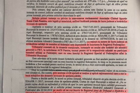 O hotărâre definitivă din anul 2022 (n.r. vezi galeria foto) spune: ‘FRT nu mai are dreptul să organizeze nicio Adunare Generală până nu înscrie toate cluburile în registru, în extras’. Nu s-a întâmplat lucrul acesta și nu se întâmplă”, a declarat singurul român din Tennis Europe pentru ProSport. George Cosac a câştigat în luna februarie alegerile pentru preşedinţia FRT, după ce ceilalţi patru candidaţi, Răzvan Itu, Dumitru Hărădău, Tudor Napoleon Spartacus Iacov şi Mihai Rusu s-au retras din cursa electorală. Cosac a primit 142 de voturi, iar la începutul Adunării Generale dau fost prezenţi 157 din numărul total de 421 de membri afiliaţi ai FRT, în condițiile în care Itu reclamă că doar 54 de cluburi au drept de vot, conform legii.