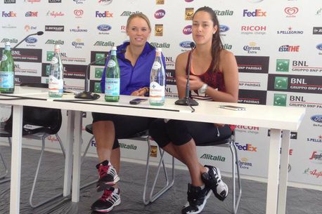 Turneul de la Roma, dotat cu premii în valoare de 2,4 milioane de dolari, a început luni, iar spiritele s-au încins pe teren, dar și la centrul de presă de la Foro Italico. Acolo a avut loc o conferință inedită, la care au fost prezente două staruri ale circuitului feminin de tenis, Ana Ivanovic (Serbia, 7 WTA) și Caroline Wozniacki (Danemarca, 5 WTA).