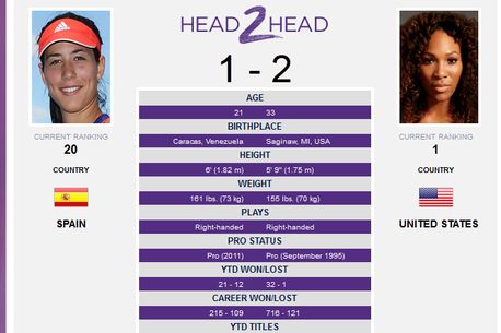 La 21 de ani, iberica este ultimul mohican pe baricade, ultima redută de cucerit de către americancă înainte de atingerea unor borne importante: titlul 21 de Grand Slam și reducerea cu încă o unitate a diferenței față de cele 22 de trofee ale nemțoaicei Steffi Graf. Completarea unui al doilea „Serena Slam” și deținerea, pentru cel puțin câteva săptămâni, a tuturor celor patru titluri de Grand Slam din sportul alb, sunt alte obiective ale numărului unu mondial.