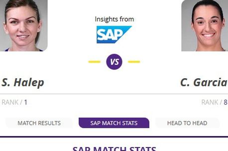 Cu excepția unui început ezitant, pe care Simona l-a dat uitării ajutată fiind și de antrenor, constănțeanca a servit ca din tun! Halep i-a lăsat un singur break franțuzoaicei, la 3-2 în actul inaugural, apoi Garcia nu a mai avut nicio șansă la retur! N-ai fi zis că pe teren se află o jucătoare de 1,68 m, care în mod constant începea să domine fizic o sportivă mai înaltă cu 10 centimetri. Halep a reușit 4 break-uri, iar diferența în meciul câștigat cu 6-4, 6-2 a fost făcută în mod clar de eficiența pe propriul serviciu. O spune și statistica:
