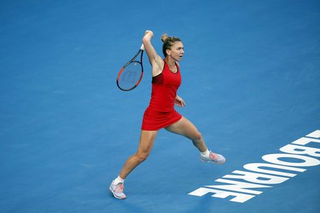 Romania's Simona Halep reacts after winning against Montenegro's Danka Kovinic during their women's singles match on day six of the Australian Open tennis tournament in Melbourne on January 22, 2022.,Image: 655277407, License: Rights-managed, Restrictions: -- IMAGE RESTRICTED TO EDITORIAL USE - STRICTLY NO COMMERCIAL USE --, Model Release: no, Credit line: Profimedia