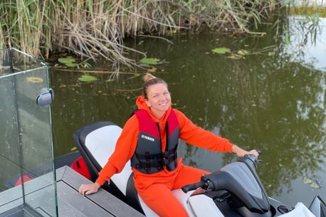 Simona Halep (29 de ani) a reluat antrenamentele după accidentarea suferită la gambă, dar și-a făcut timp și pentru o plimbare cu skijetul pe Lacul Snagov! Halep deține cel mai puternic skijet, marca Yamaha, cu o putere estimată între 260 și 300 cai putere.