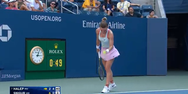 UPDATE 21:45 Simona Halep pierde primul set în fața outsiderei din Ucraina cu 6-2! Constănțeanca scapă un rever în afara terenului, iar Snigur își adjudecă fără drept de apel setul. Greu de spus ce se întâmplă cu jocul sportivei noastre, care își pune prosopul în cap în pauză.