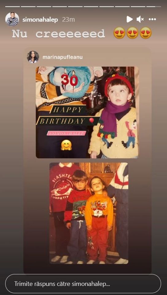 Verișoara Simonei Halep, Marina Pufleanu, a surprins-o pe sportivă atunci când a postat două fotografii din copilăria lor. Imaginile au emoționat-o pe „Simo”, care a reacționat cu un mesaj: „Nu credddd!”, a scris Simona.