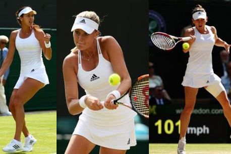 Foto: wtatennis.com. Ana Ivanovic (stânga) și Kiki Mladenovic (centru), două jucătoare Adidas care s-au îmbrăcat la fel ca Simona, au primit mai puțin de 4% din voturi.