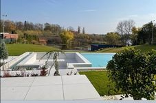 Simona s-a bucurat de peisajul superb pe care l-a creat în curtea vilei, dar nu înainte de a petrece momente frumoase cu cel mai nou membru al familiei, o cățelușă adorabilă pe nume Lessie.