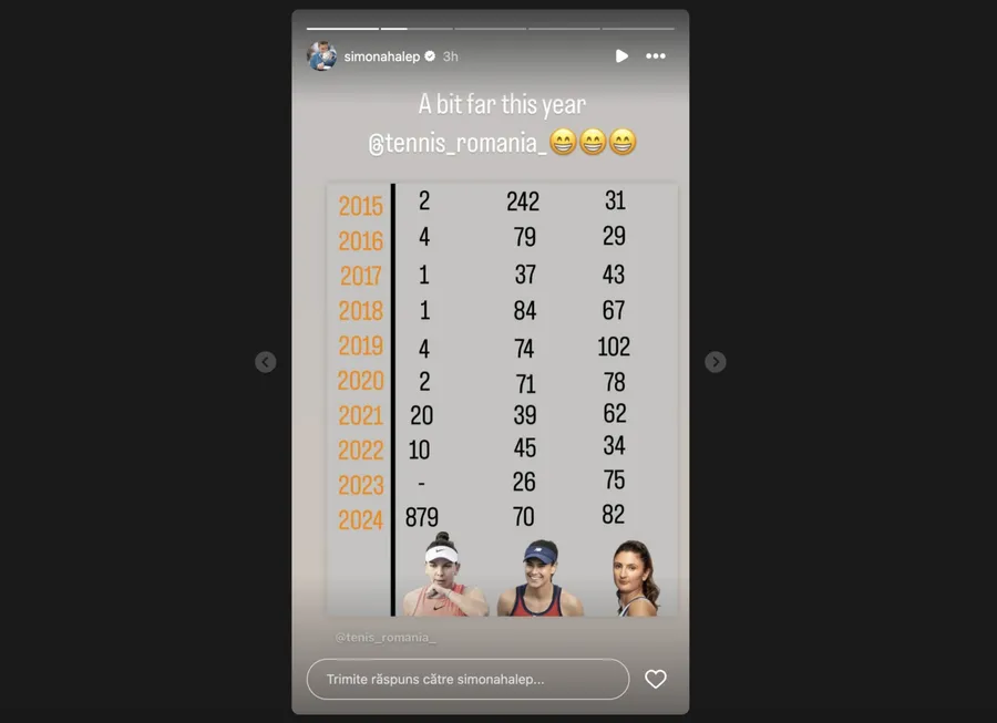 În ceea ce privește postarea Simonei Halep, fostul lider WTA a început cu anul 2015, atunci a început dominația ei din circuitul WTA.