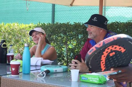 Alături de Simona Halep apare ibericul Andreu Gimeno, unul dintre cei mai recunoscuți antrenori ai CF Tennis Academy, locul unde jucătoarea din România s-a antrenat multă vreme, pentru pregătirea revenirii în circuit, iar acum pune în practică unul dintre sporturile preferate ale bogătașilor, padelul.