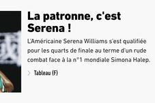 „Dominatoare, de nebătut, a câștigat un meci intens”, au mai scris francezii despre fiica lui Richard Williams. Serena o va întâlni în sferturi pe Karolina Pliskova, sportiva cehă impunându-se 6-1, 6-3, în fața Garbinei Muguruza.