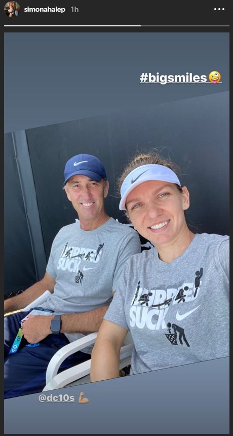 Halep și antrenorul ei Darren Cahill și-au luat tricouri la fel, cu mesajul „Burpees suck”, iar momentul a fost surprins pe Instagram de către cei doi, spre amuzamentul australianului.