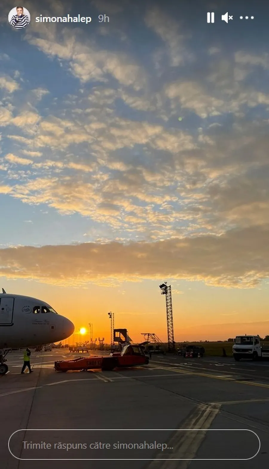 Simona Halep a publicat o fotografie cu răsăritul de soare, pe care cei doi proaspăt căsătoriți l-au prins pe aeroport, la plecarea spre Bodrum (Turcia). Simona a călătorit cu același avion în care s-a aflat și canotoarea Simona Radiș, care a dezvăluit fără să vrea destinația în care a mers, printr-o postare pe Instagram.