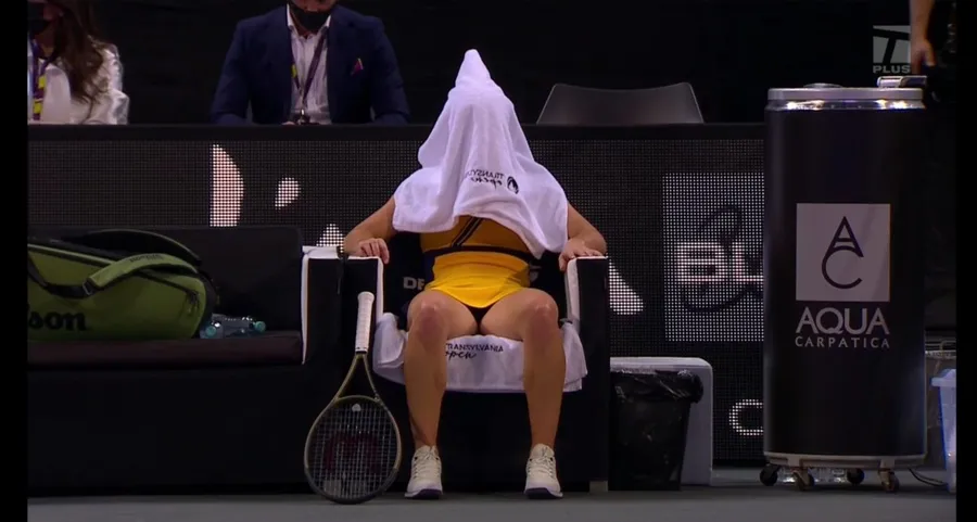 Un alt gest inedit al Simonei a fost acela de a-și pune prosopul în cap. Tertipurile româncei au fost însă în zadar, iar Simona Halep nu a putut să o scoată pe Anett Kontaveit din zona ei de confort.