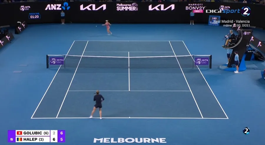 Golubic a trecut în faza precedentă de Lesley Kerkhove (Olanda, 158 WTA), scor 6-3, 6-0. Dacă o învinge pe elvețiancă, Simona Halep își va asigura un cec de 10.100 de dolari și 110 puncte WTA, iar în semifinale se va duela cu învingătoarea dintre Ana Konjuh (Croația, 67 WTA) și Qinwen Zheng (China, 126 WTA). Meciul în care Simona Halep pornește cu prima șanssă va fi Live Video Online pe www.prosport.ro, poate fi urmărit și Live Stream Online, pe digisport.ro. Duelul din sferturile Melbourne Summer Set va fi transmis la TV ÎN DIRECT la Digi Sport 2.