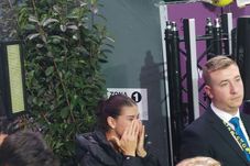 Prima care a îmbrățișat-o a fost Raluca Olaru, care a realizat interviurile de pe teren. A doua a fost Sorana Cîrstea. Amândouă au fost surprinse plângând, motiv pentru care Halep a dorit să clarficie lucrurile.