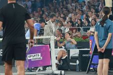 Acum, un român i-a adresat aceeași intrebare lui Steffi, când se pregătească să servească, râsetele invadând sala. De această dată, fosta mare jucătoare a dat din deget că răspunsul este negativ, după care a arătat spre Andre Agassi, aflat lângă fileu.