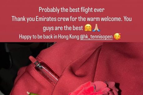 Halep a fost entuziasmată de tratamentul pe care l-a primit din partea operatorului aerian cu care a zburat până în Hong Kong și a postat o fotografie pe rețelele sociale, unde avea un trandafir, dar și un mesaj de mulțumire.