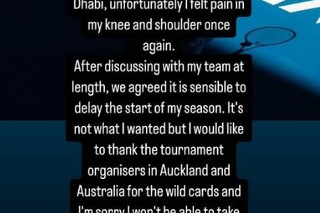 După ce am discutat cu echipa mea, am ajuns la concluzia că este mai bine să amân startul sezonului. Nu este ceea ce mi-aș fi dorit și vreau să le mulțumesc organizatorilor de la Auckland și Australian Open pentru wild card-urile pe care mi le-au oferit. Îmi pare rău că nu voi putea participa de această dată.