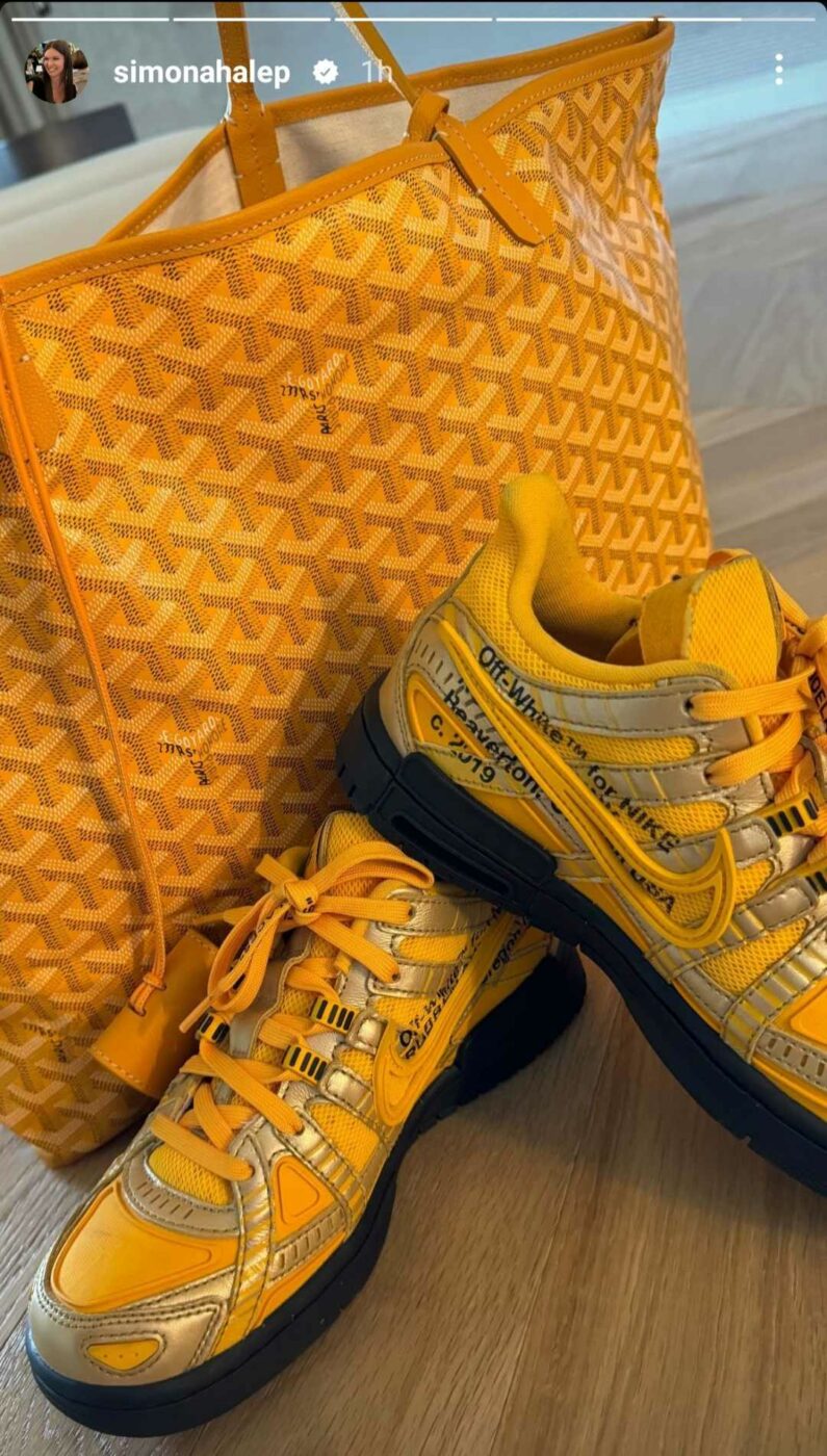 Însă, Simona nu a spart pușculița doar pe geantă, ci și pe o pereche de adidași care să se asorteze cu aceasta. Astfel, și-a cumpărat și o pereche de pantofi sport Nike Rubber Dunk x Off-White University Gold, a căror preț stabilit de producător este de aproximativ 450 de euro.