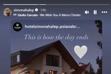 „Așa se încheie ziua”, apare în legenda postării de la hotel, postare pe care Simona Halep a distribuit-o la rândul său. Iar imaginea este una specific de iarnă, cu bradul din fața hotelului, plin de luminițe festive, singurul lucru care lipsea din cadru fiind zăpada.