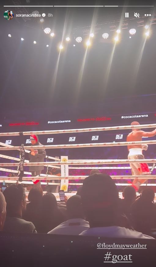 Românca a asistat din primele rânduri la o gală în care cap de afiș a fost meciul dintre Floyd Mayweather și cunoscutul star britanic de pe YouTube, Deji. Partida a fost câștigată de american în runda a șasea, deși adversarul său a impresionat cu mișcările sale.
