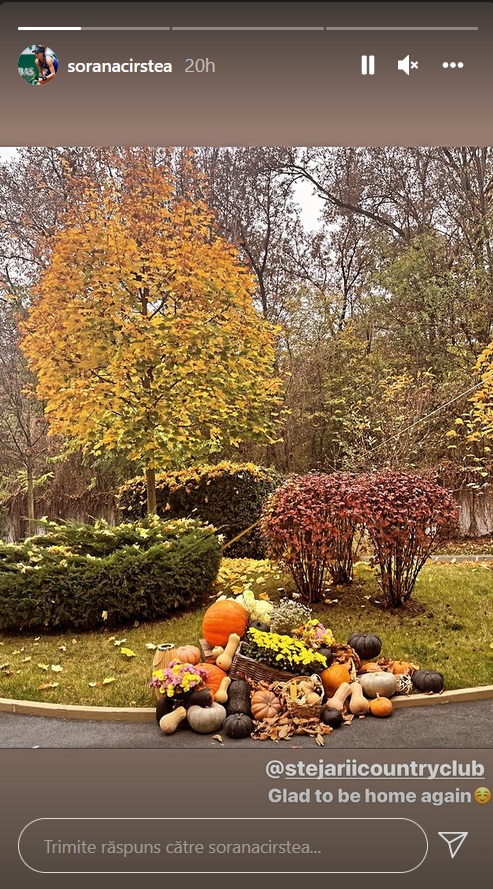 „Sori” a intrat în atmosfera Halloween-ului mergând mai întâi la Stejarii Country Club, acolo unde locuiește iubitul ei, Ion Țiriac Jr. Decorațiunile cu dovleci nu au lipsit din complexul situat în nordul Capitalei. Dovleacul este cel mai popular simbol al Halloween-ului.