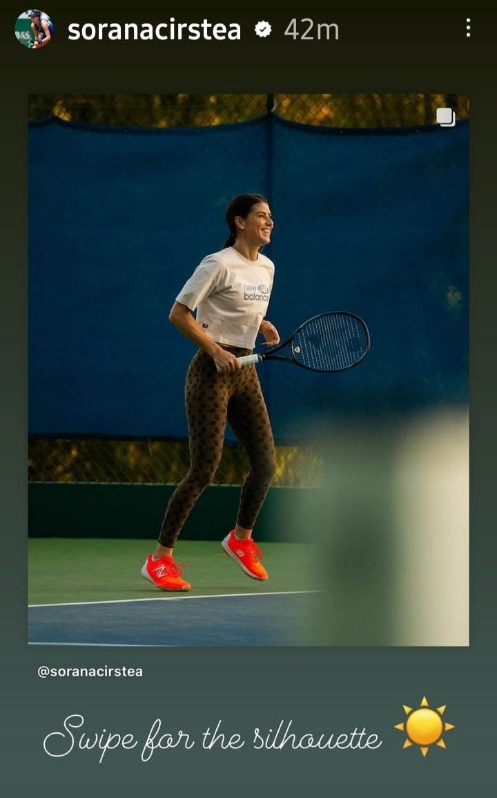 Sorana Cîrstea a făcut o ședință foto chiar în timpul antrenamentului, apoi s-a lăudat cu fizicul ei pe internet: „Dați swipe ca să îmi vedeți silueta!”, a scris jucătoarea de tenis în descrierea fotografiilor.
