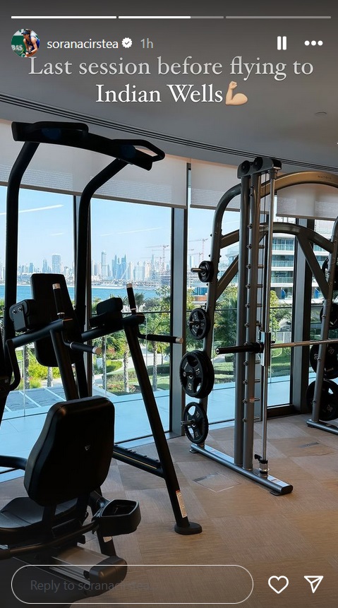 Totodată, cea mai bună jucătoare de tenis a României a ținut să le transmită susținătorilor ei că va pleca în SUA, pentru a lua cu asalt turneul de la Indian Wells: „Ultima sesiune de antrenament înainte de a zbura la Indian Wells”, a transmis Cîrstea