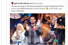 Omul de afaceri o ironiza pe Sharapova, rivala Serenei, lăsând să se vadă mesajul de pe tricou al unei campanii anti-drog din SUA: D.A.R.E. – Drug Abuse Resistance Education (n.red. – Programul de combatere a abuzului de droguri).