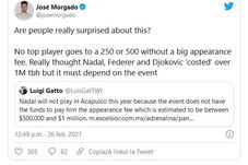 De asemenea, Jose Morgado, jurnalist la Record, susține că niciun tenismen din fruntea clasamentului nu apare la un turneu din categoria 250 sau 500 fără un „comision” uriaș.