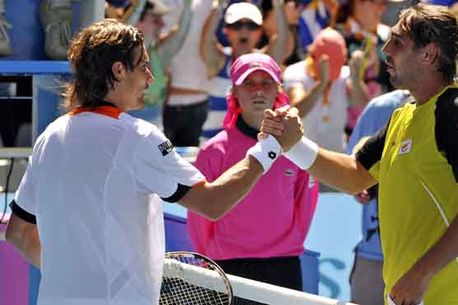 Cipriotul Marcos Baghdatis a făcut un nou meci mare la Australian Open și l-a învins pe David Ferrer (cap de serie nr. 17), la capătul unui meci ce a ținut patru ore și nouă minute. Condus cu 2-0 la seturi și obligat să-și recâștige serviciul la 3-4, în setul trei, Baghdatis a rămas calm și a revenit incredibil. Primele două seturi au fost echilibrate, însă Ferrer a profitat din plin de șansele de break avute și a luat un avans ce părea decisiv. În setul trei, spaniolul a câștigat din nou pe serviciul adversarului la prima oportunitate și se afla la doar două game-uri de turul trei (4-3).