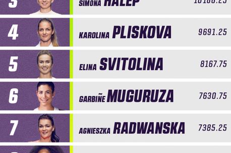 7. Agnieszka Radwanska (33 WTA) – poloneza este în scădere de formă în circuit, comparativ cu anii de vârf, iar cele 6 trofee care o saltă în acest clasament vin din 2015 și 2016 ( Beijing, New Haven și Shenzhen 2016, Turneul Campioanelor, Tianjin și Tokyo – 2015)
