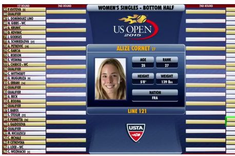Sorții au trimis-o pe Maria Șarapova pe jumătatea de tablou, dominată de Serena Williams. Astfel, semifinalele proiectate pentru tabloul feminin la Flushing Meadows sunt Serena Williams (1 WTA) – Maria Șarapova (3 WTA) și Simona Halep (2 WTA) – Caroline Wozniacki (4 WTA).
