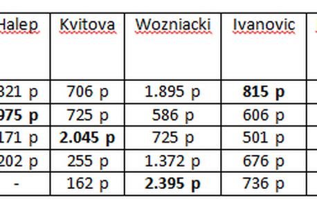 Zestrea de puncte adunate de jucătoarele din Top 10 (actual) în US Open Series în ultimii cinci ani: