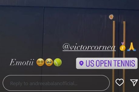 Andreea Bălan, iubita lui Victor Cornea, nu l-a însoțit pe tenismen la US Open, dar a urmărit meciul cu sufletul la gură în fața televizorului: „Emoții”, a scris vedeta în dreptul unei fotografii cu Victor.