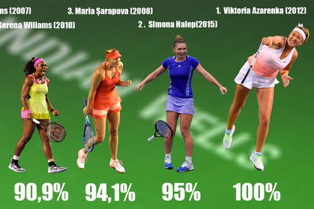 Ar mai fi de remarcat faptul că până la ediția din acest an Serena nu a participat în ultimul deceniu la Indian Wells, dar chiar dacă ar fi fost prezentă și ar fi câștigat, tot n-ar fi ajuns la un procent de 95%, pentru că americanca nu a luat startul nici în alte turnee în primele luni ale unui sezon.