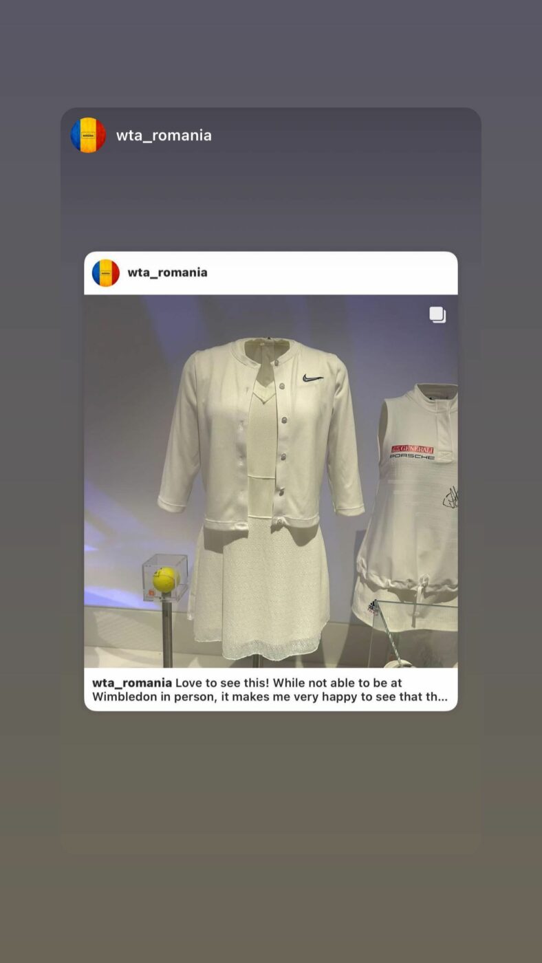 Gestul britanicilor a impresionat-o enorm pe Simona, care a distribuit postarea pe Instagram: „Ador să văd asta! Chiar dacă nu a putut fi în carne și oase la Wimbledon, englezii păstrează rochia și cardiganul, hainele pe care le-a purtat în 2019, când a bătut-o pe Serena.