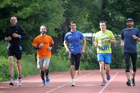 Pe pista atletică, cei cinci nu au fost singuri. Terenul, cu vedere clară spre Național Arena, era aglomerat: copii, vârstinici, tinere alergând cu căști în urechi, unii sprintând pe culoarele drepte din centru, alții făcând exerciții de reflexe printre jaloanele întinse pe pistă. Și după spusele protagoniștilor noștri, a fost și mai plin în alte dăți. Silviu și Paul au dat mai multe ture în tandem, umăr la umăr. Apoi Silviu a rupt ritmul. S-a distanțat în față, a făcut două ture în viteză și apoi și-a așteptat colegul.