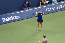 Aceasta le-a ignorat și a prins-o abia pe a treia, în huiduielile publicului. Ulterior, s-a aplecat și a luat de jos o altă minge.