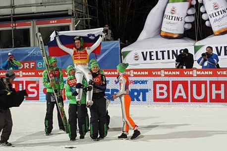 Acasa » Alte Sporturi » Turneul celor patru trambuline. Peter Prevc, liderul Cupei Mondiale, a terminat en-fanfare competiția și a dus „Vulturul de Aur” în Slovenia