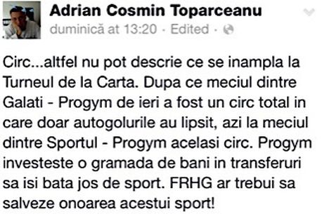 După acea postare a urmat o adevărată telenovelă, cu suspendări și ridicări de suspendări ale arbitrului pe parcursul unui an și 3 luni. Ultima decizie este cu adevărat șocantă: 3 ani de suspendare pentru părerile emise pe Facebook în februarie 2015! Adrian Cosmin Topârceanu susține că măsura Biroului Federal este abuzivă, neconformă cu regulamentele, astfel că în primă instanță a înaintat memorii către conducerea forului de specialitate și către Ministerul Tineretului și Sportului.