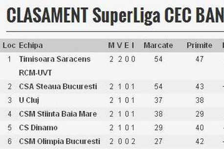 Etapa a doua a SuperLigii de rugby a fost una a surprizelor. După victoria Timișoarei la Baia Mare, 24-19, a fost rândul Universității Cluj să răstoarne calculele hârtiei. Sâmbătă, în ultimul meci al etapei, elevii lui Ioan Teodorescu și Horea Himpea au învins, la București, chiar una dintre favoritele la titlu, CSM Olimpia, cu 23-22 (10-15).