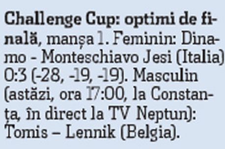 Victimă a propriilor greșeli, comise din nou la serviciu-preluare, în momente cheie ale seturilor, „pișcată” în două rânduri și de arbitrul principal Mihailo Melnik (Ucraina), campioana României a cedat la Istanbul, în fața lui Vakifbank: 1:3 (22, -25, -14, -24).