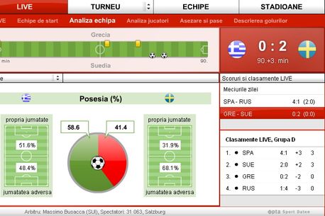 Grecia a fost echipa mai prezentă, mai stăpână pe joc, dar de această dată tocmai blocul defensiv privat-o de un debut fericit, aceeași apărare care îi asigura gloria acum patru ani. S-a bătut Grecia cu mâna ei? Să vedem ce spun cifrele. Grecii au câștigat 52 % din totalul duelurilor, scandinavii fiind superiori, evident, doar la cele aeriene. Charisteas și compania au avut și o posesie superioară a balonului, 58 % din totalul timpului de joc, în timp ce nordicii au păstrat balonul doar 41 % din perioada de joc. De două ori au fost suprinși în ofsaid suedezii, și numai o dată campionii en-titre. Grecia a dominat steril și nu reușit să pună în real pericol poarta lui Isaksson, în schimb Suedia a speculat slăbiciunile defensivei elene și l-a învins de două ori pe ezitantul Nikopolidis. De 11 ori au amenințat grecii spațiul porții adverse, în timp ce elevii lui Lars Lagerback au expediat 13 șuturi către buturile grecești.