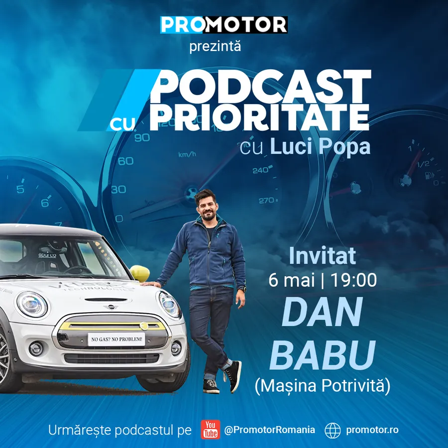 Dan Babu de la Mașina Potrivită este invitatul ediției cu numărul 7 a „Podcast cu prioritate” by ProMotor. Emisiunea va fi difuzată sâmbătă, 6 mai, ora 19:00, pe canalul de YouTube ProMotor România și pe site-ul www.promotor.ro.